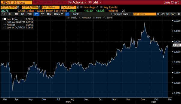 The Japanese Ministry of Finance (MoF) will today sell Y2.5tn of 5-Year JGBs. MoF last sold 5-year debt on 17 February 2026.