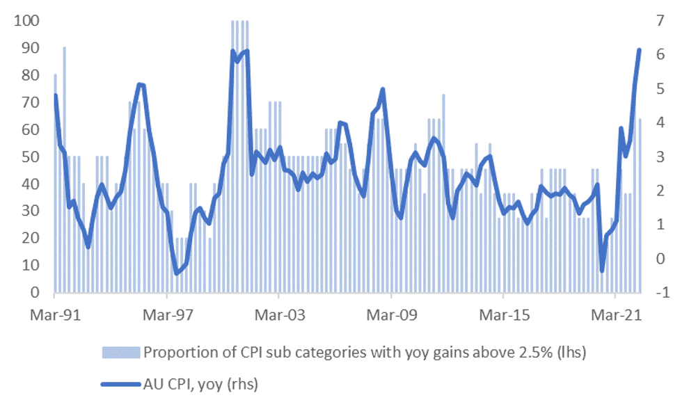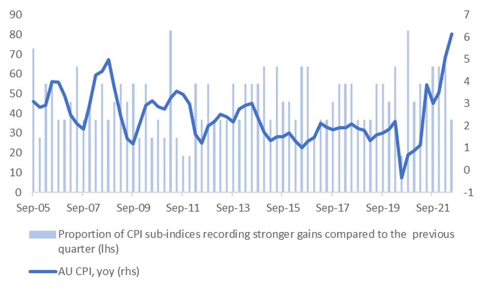 Fig 2: Proportion of Major Australian CPI Sub-Indices Running Above 2.5% YoY Pace