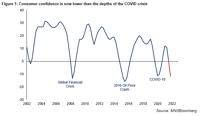 Tsy futures trading broadly higher back near pre-FOMC levels, global growth concerns spurring risk-off bid for rates. Oil bid evaporates, WTI -5.0 at 104.52 -- Pres Biden speaking at 1400ET is expected to ask Congress to suspend Federal fuel tax for three months.