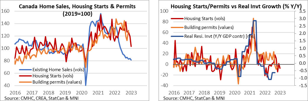 - The data remain consistent with a continued “substantial” decline in housing activity as the BoC noted in its Jan 25 rate announcement.