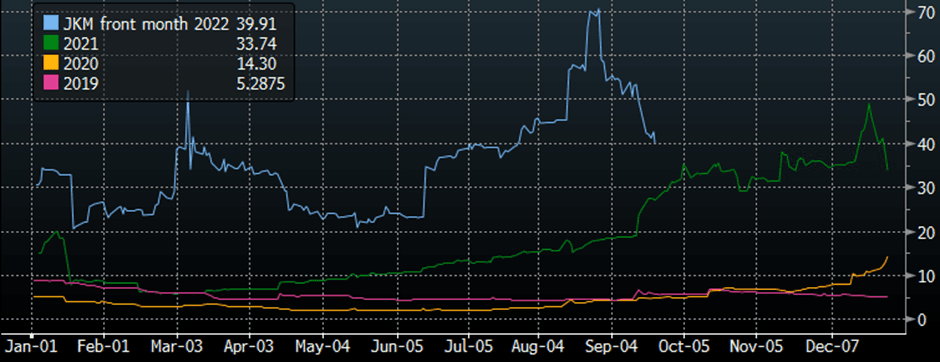 - Competition for LNG cargoes remains strong with high demand from Europe to replace Russia supplies and cover for winter consumption.
