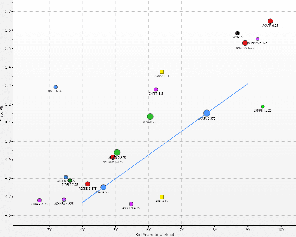 • Interpolating between the existing AXASA RT1s secondary pricing would put FV at c.5%,  or higher (5.125-5.25%) if we account for the 100bps float spread difference.