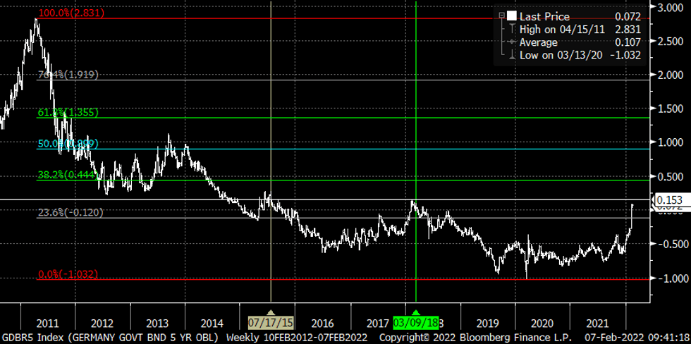 German 5yr Bobl yield is now at highest level since 09th March 2018.