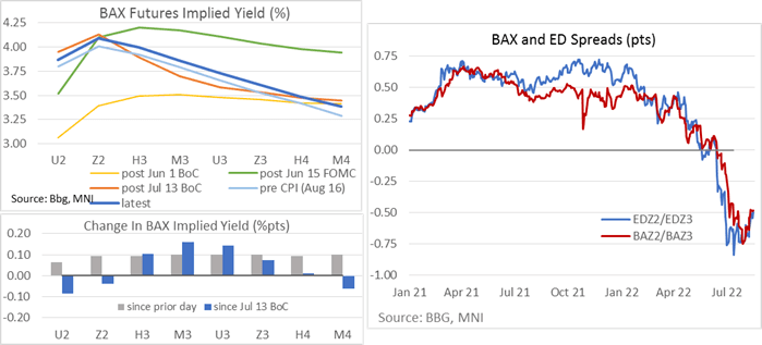 Tsys trading moderately higher, inside session range as Fed speak appeared to move markets more than economic data. Reminder: Fed enter policy blackout at midnight tonight.