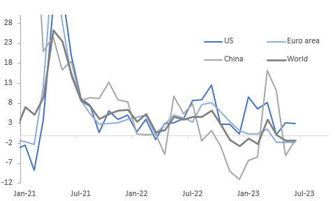 CPB data showed global export volume growth remained weak in June in both developed and emerging nations, especially in Asia. Advanced economies’ export growth rose 0.2% m/m to be down 0.6% y/y an improvement from -1.6% and outpacing EM which fell 1% m/m to be down 2.6% y/y after -0.5% y/y. Annual export growth contracted across Asia, except Japan which returned to positive territory, but generally saw some improvement.