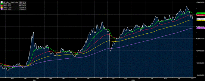 Technicals: All major onshore equity bourses remain elevated on a P/E basis, though with falls last week have dipped below the 20-day EMA with Shenzhen near to the 50-day EMA for the first time since June. The Hang Seng by comparison is trade through the 50-day EMA and is near to the 100-day EMA which it last broke below in April.