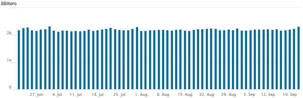 NY Fed reverse repo usages climbs to $2,238.840B w/ 102 counterparties vs. $2,238.840B prior session. Nearing record high that still stands at $2,329.743B from Thursday June 30.