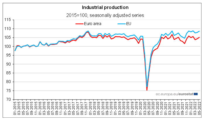 - Industrial production saw an optimistic rebound in the Eurozone May print, expanding at 1.6% y/y, following the downwards revised -2.5% y/y contraction recorded in April. This is a significant beat of the modest +0.3% m/m and y/y improvement anticipated.