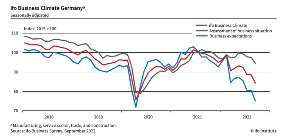 GERMANY SEP IFO BUSINESS CLIMATE 84.3 (FCST 87.0); AUG 88.6r