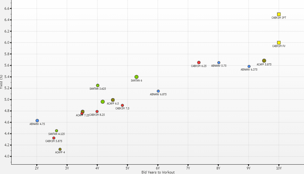 • We consider the value to place on the 2.6year extension from the CABKSM 6.25% Perp (394bps float) yielding 5.65%.