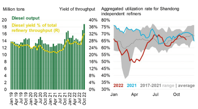- The additional fuel export quotas of 15m tons, released at the end of September, has supported diesel production, but weak domestic oil demand has pushed refiners to reduce overall output.