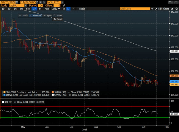Following last week’s policy decision, BoJ-dated OIS pricing is softer across late 2025/early 2026 meetings compared to early August levels, but slightly firmer for mid to late 2026 meetings.