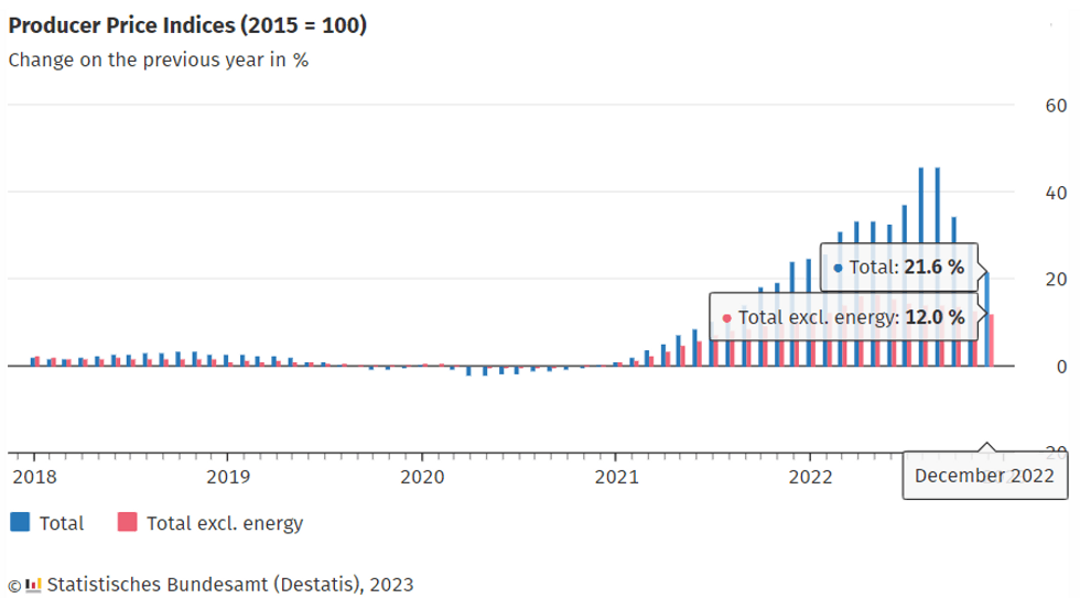 GERMANY DEC PPI +21.6% Y/Y (FCST +20.7%); NOV +28.2% Y/Y