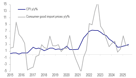 NZ CPI vs consumer goods import prices y/y%