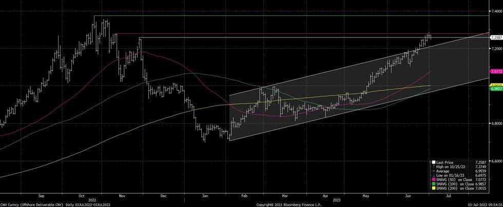 USD/CNH has ticked lower early this week, although the uptick in the broader USD since the Asia-London handover has seen the pair off session lows, last -100 pips around CNH7.2580, after a couple of shallow looks below CNH7.25.