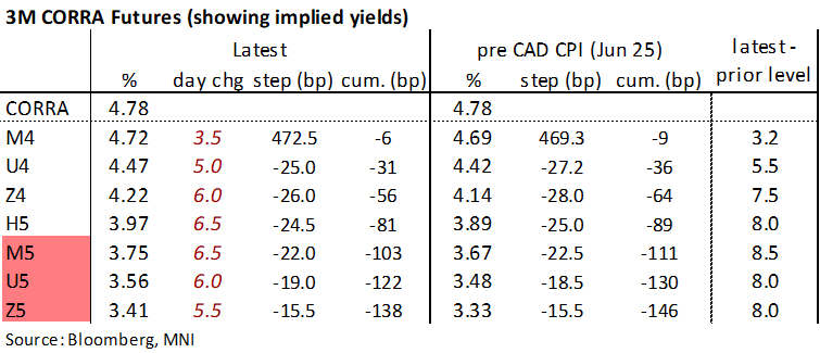 - UK: The 2-Yr yield is down 4.1bps at 3.948%, 5-Yr is down 2.5bps at 3.917%, 10-Yr is down 2.6bps at 4.13%, and 30-Yr is down 0.3bps at 4.67%.
