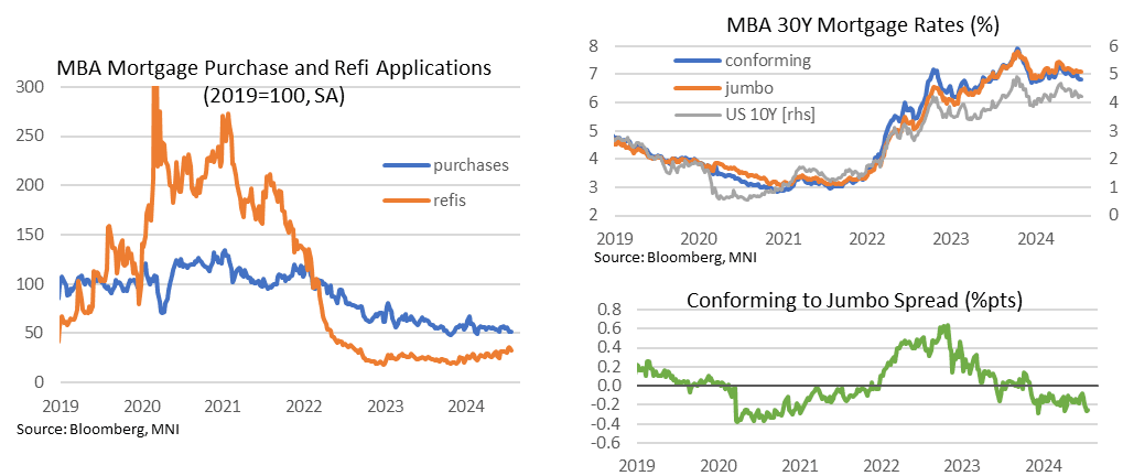 MBA mortgage applications fell a seasonally adjusted 3.9% last week and have now fully reversed a 16% jump back in early June.