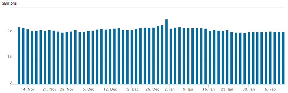 NY Fed reverse repo usage slips to $2,058.942B w/ 101 counterparties vs. prior session's $2,059.604B. Compares to Friday, Dec 30 record/year-end high of $2,553.716B (prior record high was $2,425.910B on Friday, September 30.