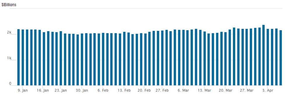 NY Fed reverse repo usage falls to $2,173.663B w/ 105 counterparties, compares to yesterday's $2,243.011B. All-time record high of $2,553.716B reached December 30, 2022; high usage for 2023: $2,375.171B on Friday March 31, 2023