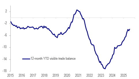 NZ merchandise trade balance 12-mth sum NZ$bn