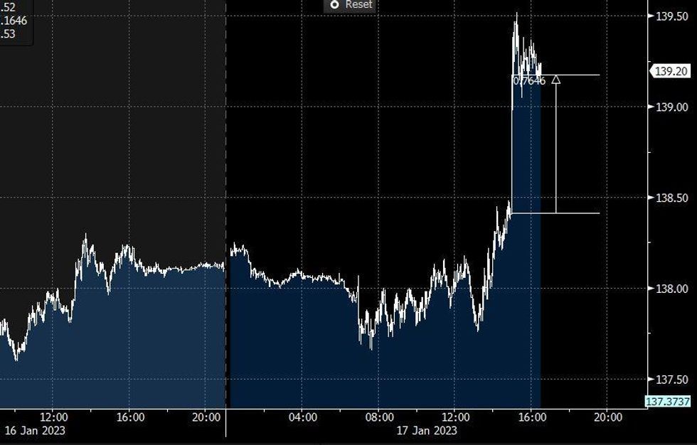 European stocks have mostly reversed gains made after the Bloomberg dovish ECB article - but Bunds have maintained their rise, with the Mar23 future up 76 ticks since the headline at 139.20.