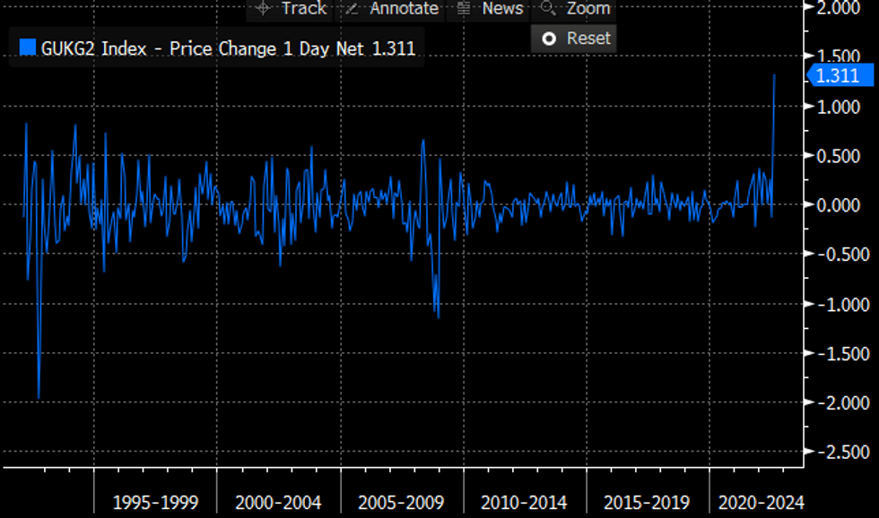 UK 2Y Generic Yield, pp Change On MonthSource: Bloomberg, MNI