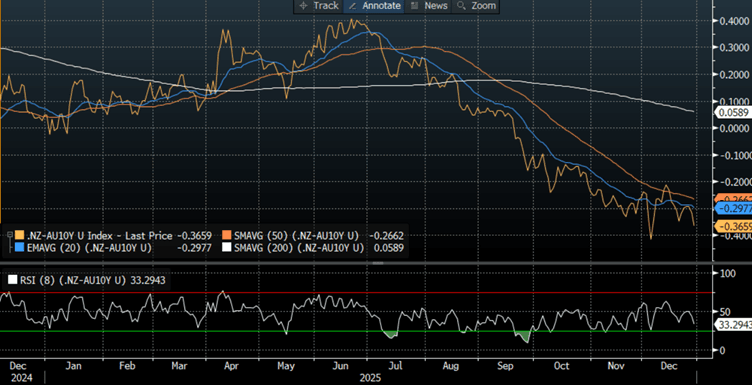 NZGBs closed showing a bull-flattening of the 2/10 curve, with benchmark yields 2-6bps lower.