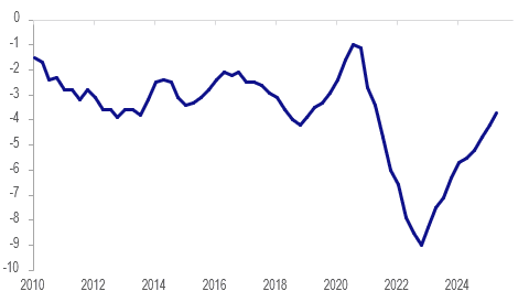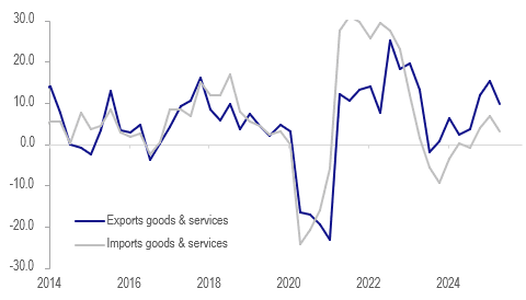 There was a sharp narrowing in the Q2 YTD NZ current account deficit as a share of GDP with it printing at 3.7% after 4.2% and the peak in Q4 2022 of 9%. Q1 was revised sharply lower at $0.709bn (nsa) and 4.2% of GDP from $2.324bn and 5.7%. The deficit in Q2 widened marginally to $0.97bn (nsa) but seasonally adjusted it narrowed $0.7bn driven by a smaller primary income deficit.