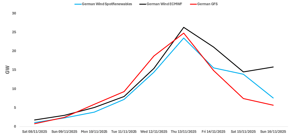 Despite these differences, all three models forecast wind output to be on a general upward over 8-13 November before steadily dropping over 14-16 November.