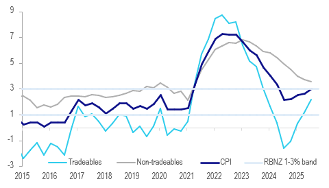 Q3 CPIs are unlikely to derail any further easing at the 26 November RBNZ meeting after the 50bp this month. Headline rose 1% q/q bringing annual inflation to 3.0% y/y from 2.7%, the top of the RBNZ’s target band but there had been fears that it could go above. Domestically-driven non-tradeables were slightly higher than the RBNZ expected at 1.1% q/q but the annual rate at 3.5% was in line. Its measure of core will print today at 1500 NZDT/1300 AEDT.