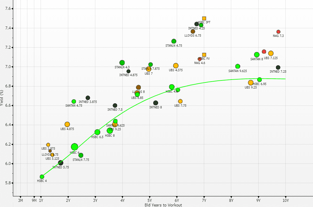 • The AT1 curve in the US is extremely flat after 5 years, something we have remarked upon before