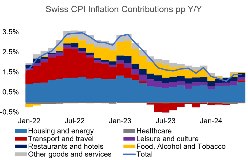 Swiss CPI inflation printed in line with consensus at 1.390% Y/Y in May (vs 1.4% cons and prior), and 0.273% M/M (vs 0.3% cons and prior). Core CPI came in lower at 1.155% Y/Y (vs 1.3% cons; 1.2% prior) and 0.214% M/M. The upside risks to the Q2 SNB inflation forecast flagged by President Jordan have not yet materialized.