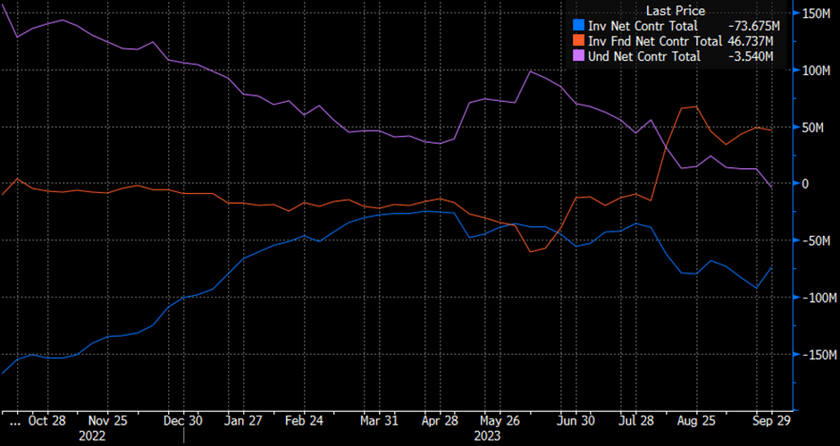 ICE TTF positions of Commercial Undertaking, eg for energy companies, fell last week to a net short for the first time since August 2021. Investment Firms regained ground after a dip last week while fund net long positions edged just slightly lower.