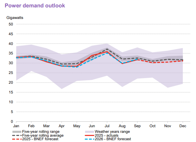 Italian power consumption is forecast to decline to 30.2GW in October, down from 31.8GW in September and 0.5GW below 2024 levels, BNEF data showed.