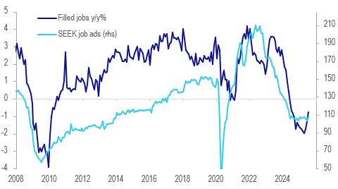 NZ filled jobs rose for the second straight month in July, which is a tentative sign of some stabilisation in the labour market but the increases remain slight. July was up 0.2% m/m after 0.1% but was still down 0.7% y/y but an improvement from June’s -1.3% y/y and April’s -2.0% y/y. Q3 labour market data is not out until 5 November and so August/September filled jobs will be monitored closely (29 Sep/28 Oct).
