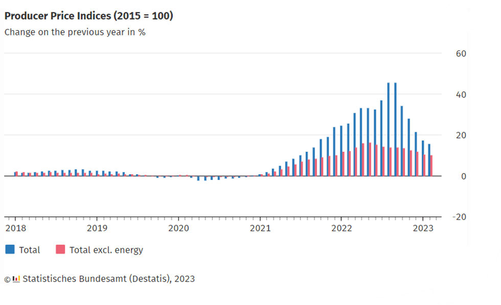 GERMANY FEB PPI +15.8% Y/Y (FCST +14.5%); JAN +17.6%r Y/Y