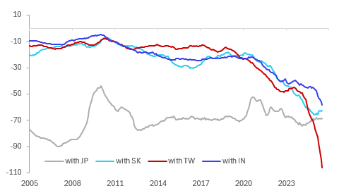 US trade deficit $bn 12mth sum