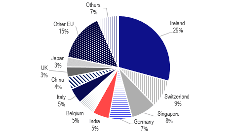 US imports of pharmaceuticals & medicines % total 2024