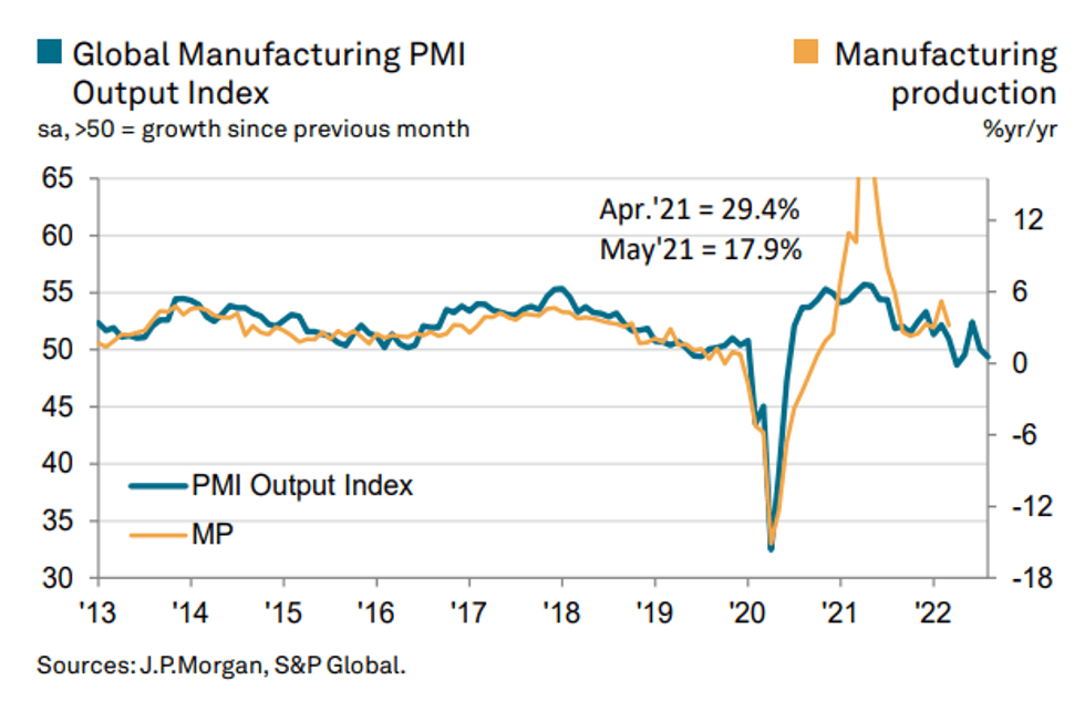 - This will continue to weigh on overall output. Eurozone manufacturing output is already falling at the fastest pace since mid-2020, adding to recessionary fears.