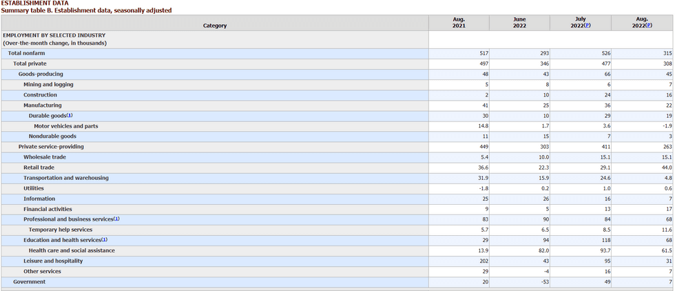 - The August unemployment report probably soft enough to preclude a 75bp hike as a "done deal" at least until the August CPI data comes out on Sept 13, and that justifies the 3+bp drop in implied pricing for the meeting (now 64bp, vs just under 68bp pre-payrolls).