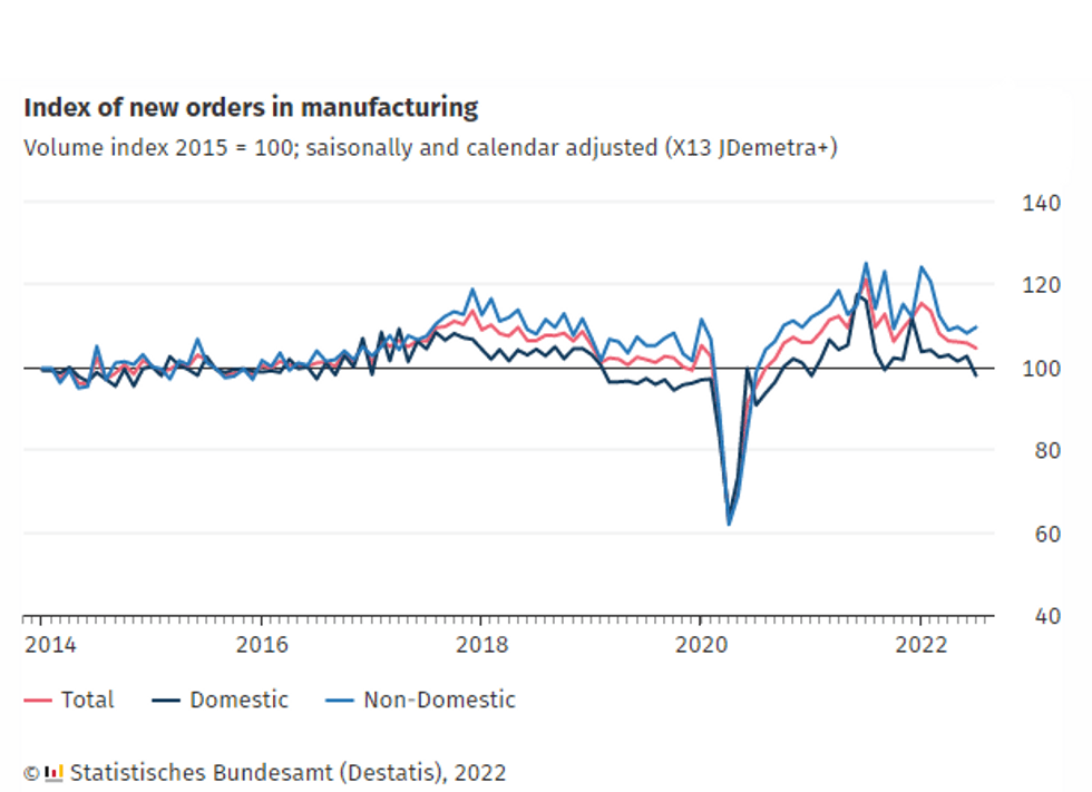 GERMANY JUL FACTORY ORDERS -13.6% Y/Y (FCST -13.4%); JUN -9.0% Y/Y