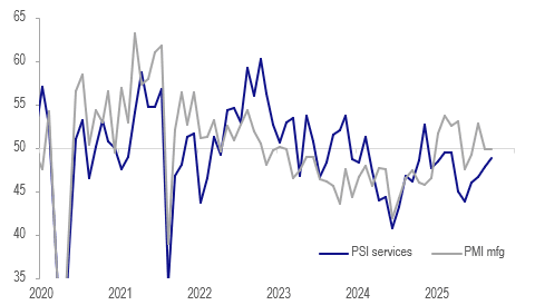 The BNZ services and manufacturing PMIs for September were consistent with the RBNZ’s assessment in its October statement that “economic activity recovered modestly in the September quarter”. The manufacturing sector stagnated in August/September, while services continued to contract but at a slower rate with September up one point to 48.8, highest since March. Continued weak activity, including employment, at the end of the quarter is consistent with further RBNZ easing with policy likely to become stimulatory.