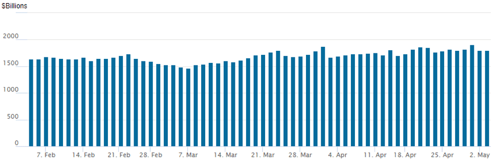 NY Fed reverse repo usage at 1,796.252B w/ 83 counterparties vs. prior session's 1,796.302B (all-time high of $1,906.802B on Friday, March 29, 2022).