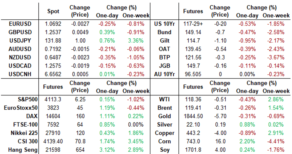 - UK focus was on a confidence vote in PM Johnson (results set for 2100BST), with EGB traders eyeing this week's ECB meeting. The German curve bear steepened, with the UK a little flatter in the return from a 4-day weekend. 10Y yields hit post-2014 highs in both cases.