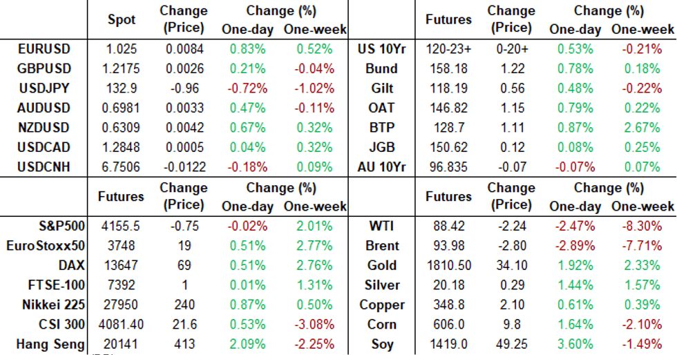 - After initial post-BOE rate annc bounce, Bonds extended highs with desks citing mix of higher than expected continuing claims (1.416M vs 1.383M est) as well as geopolitical risk as tensions in APAC region. Tension high after China launched multiple rockets over Taiwan, five of which landed inside Japan's EEZ region. Def Dept asst sec Kirby said he hopes China is not trying to engineer a conflict in region after House Sp Pelosi visit Tuesday.