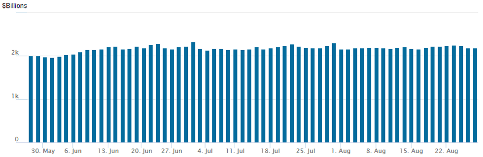 NY Fed reverse repo usages slips to $2,182.452B w/ 98 counterparties vs. $2,187.907B prior session. Record high still stands at $2,329.743B from Thursday June 30.