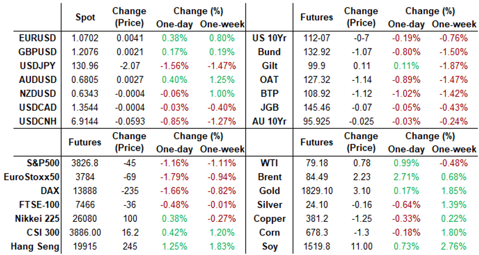 - Light holiday volumes (USH3<160k; TYH<600k) ahead the early close: FI/FX trading floor closes at 1300ET, cash Tsys close 1 hour later at 1400ET, while GLOBEX closes at 1700ET. Markets closed Monday. LINK