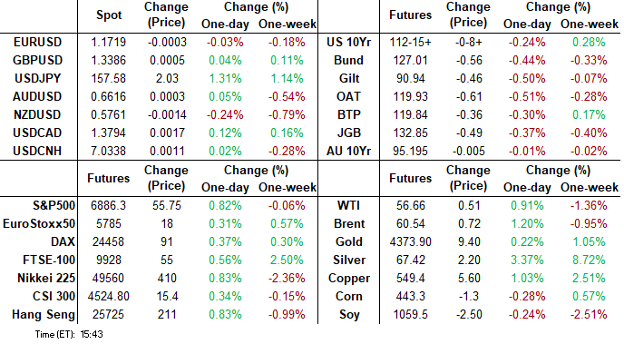 Treasuries followed Bunds lead in early trade, extending lows as rates fall back towards yesterday's pre-data levels as markets continued to question the delayed/abbreviated Oct/Nov report.