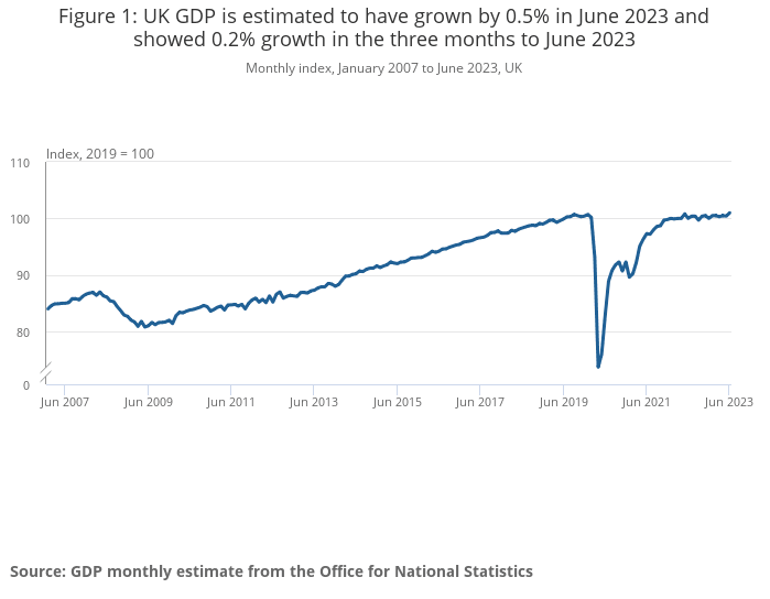 “Services also had a strong month with publishing and car sales and legal services all doing well, though this was partially offset by falls in health, which was hit by further strike action," Darren Morgan, Director of Economic Statistics at the ONS said. “Construction also grew strongly, as did pubs and restaurants, with both aided by the hot weather.