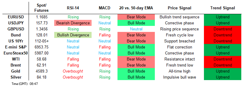 The trend structure in S&P E-Minis is unchanged, it remains bullish and price continues to trade above key near-term support at 6771.50, the Dec 18 low. Clearance of this level is required to signal scope for a deeper retracement and would also highlight a possible short-term reversal. For bulls, a fresh cycle high on Friday reinforces a bull theme. A resumption of the trend would open 7021.79, a Fibonacci projection.